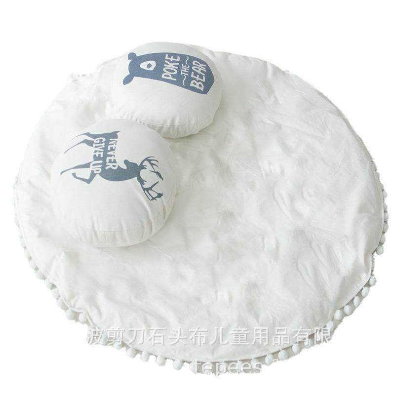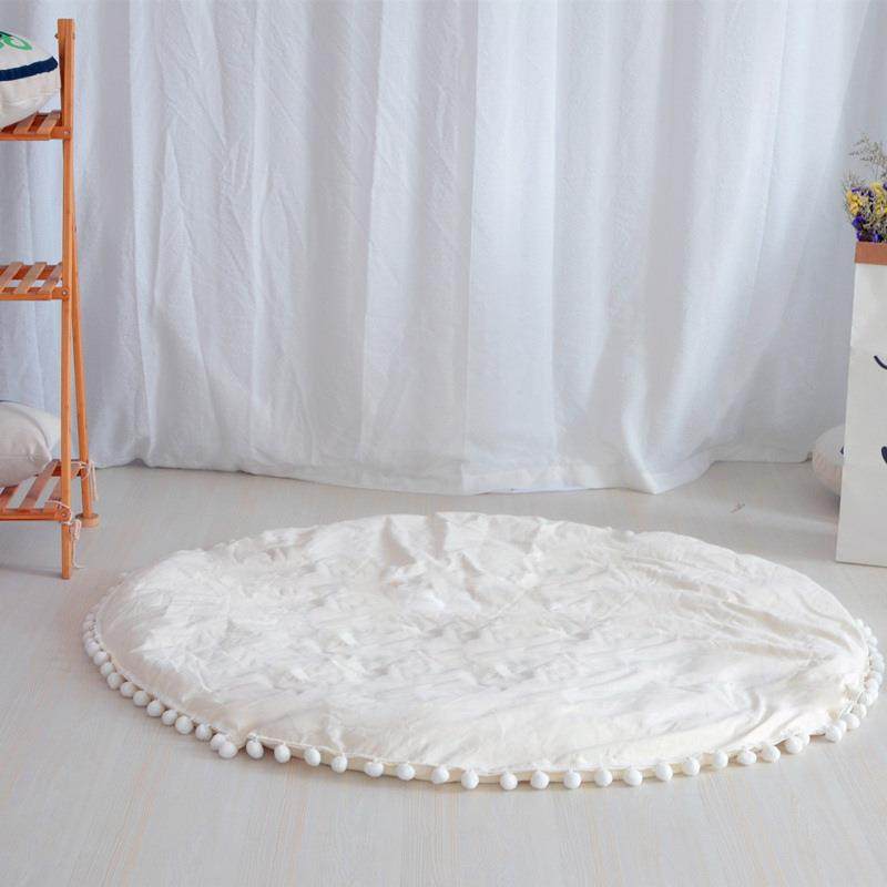小树芽INS风棉质毛球布艺加厚儿童圆形坐垫沙发垫地毯爬行垫