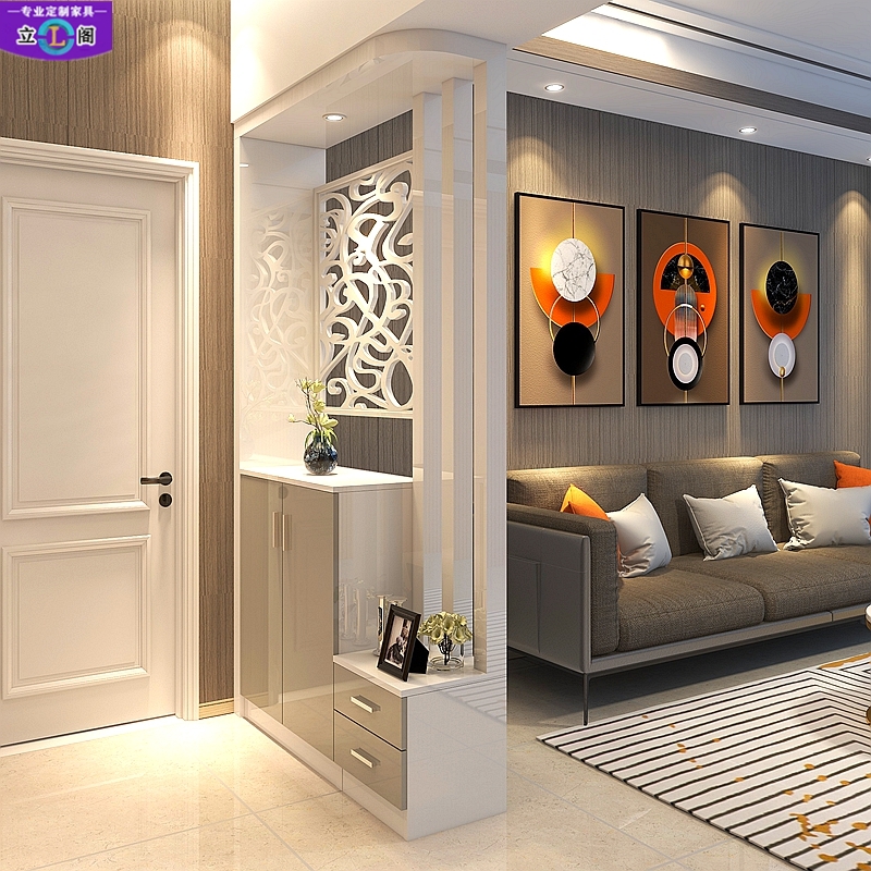 现代玄关隔断柜客厅装饰柜进门玄关柜鞋柜白色烤漆门厅装饰屏风柜