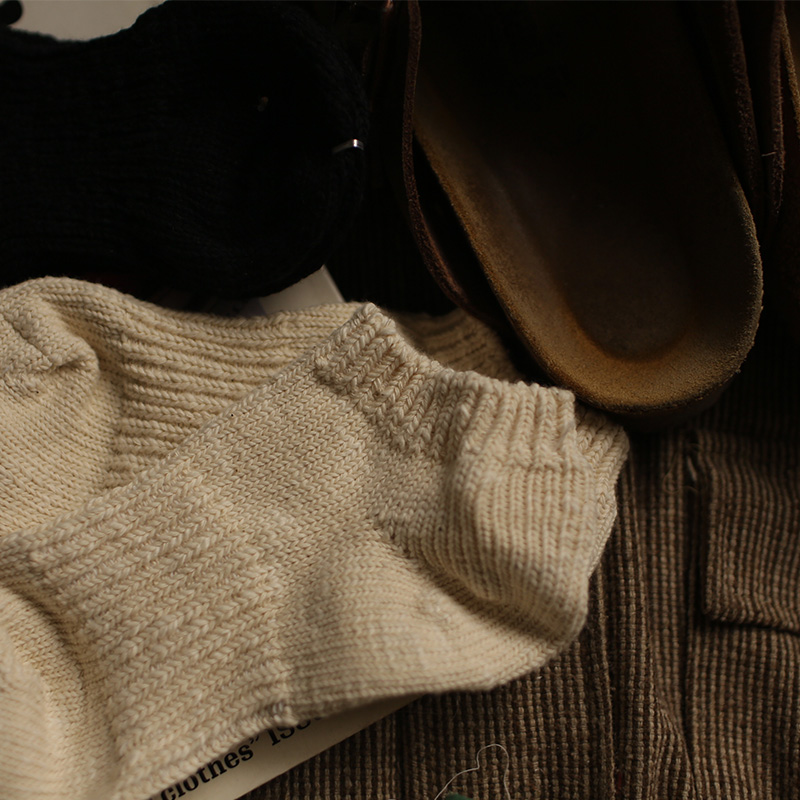 春夏日系复古原宿风粗线女棉短袜美式咔叽工装粗针后跟硅胶船袜子