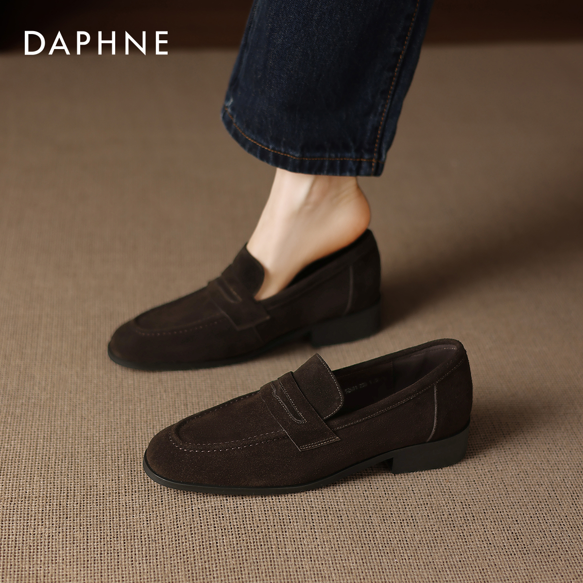 达芙妮乐福鞋女2025新款秋季英伦风一脚蹬豆豆鞋低跟皮鞋通勤单鞋