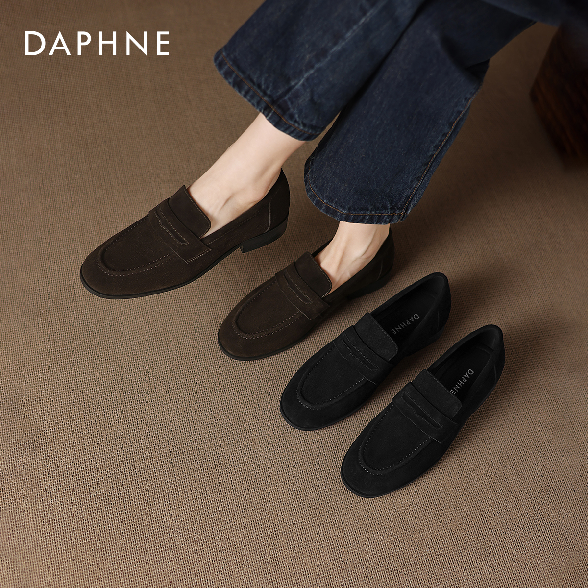 达芙妮乐福鞋女英伦风豆豆鞋单鞋