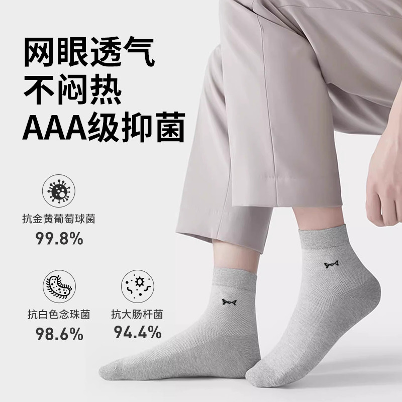 猫人纯棉袜子男士秋冬季吸汗抗菌防臭中筒袜男生黑色商务全棉男袜