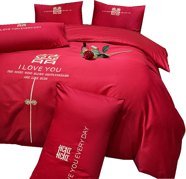 简约婚庆四件套大红全棉中式喜庆爱心新结婚房嫁礼床上用品床单笠