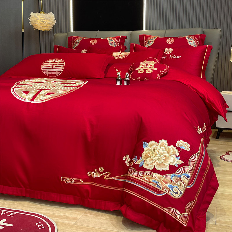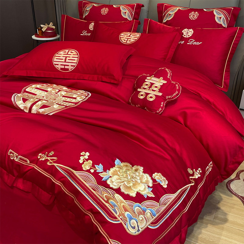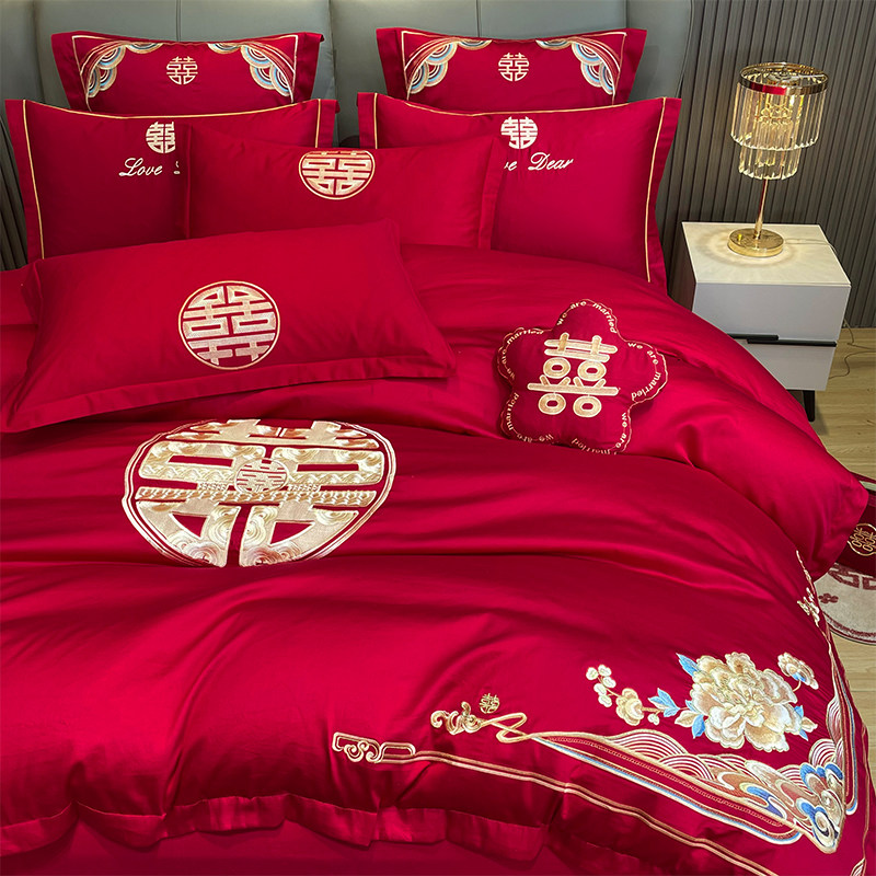 锦振婚庆大红四件套全棉