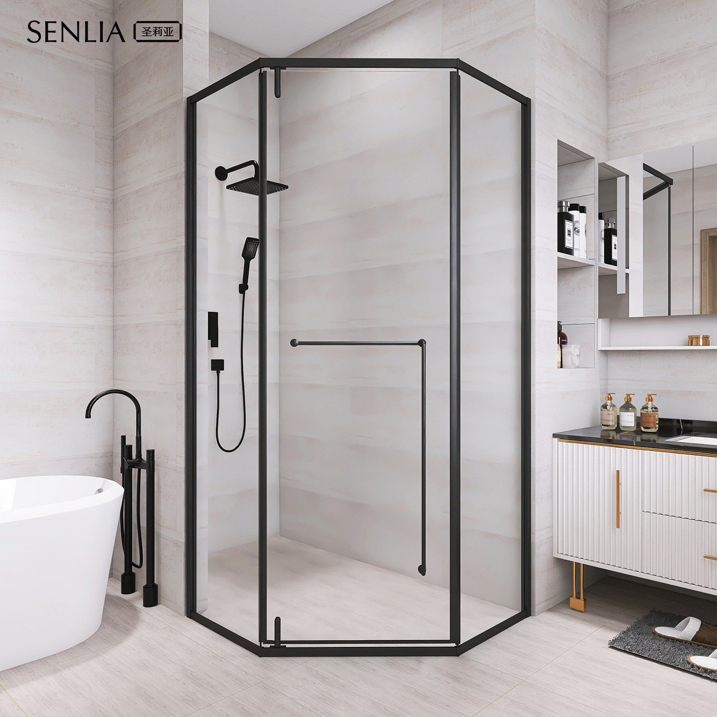 圣莉亚淋浴房定制卫生间半隔断玻璃门干湿分离钻石型整体简易浴室