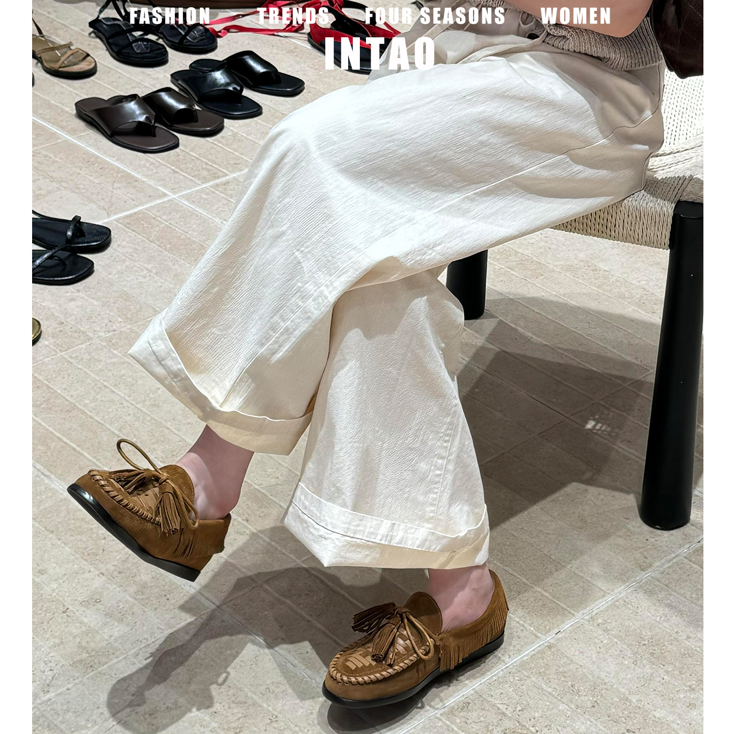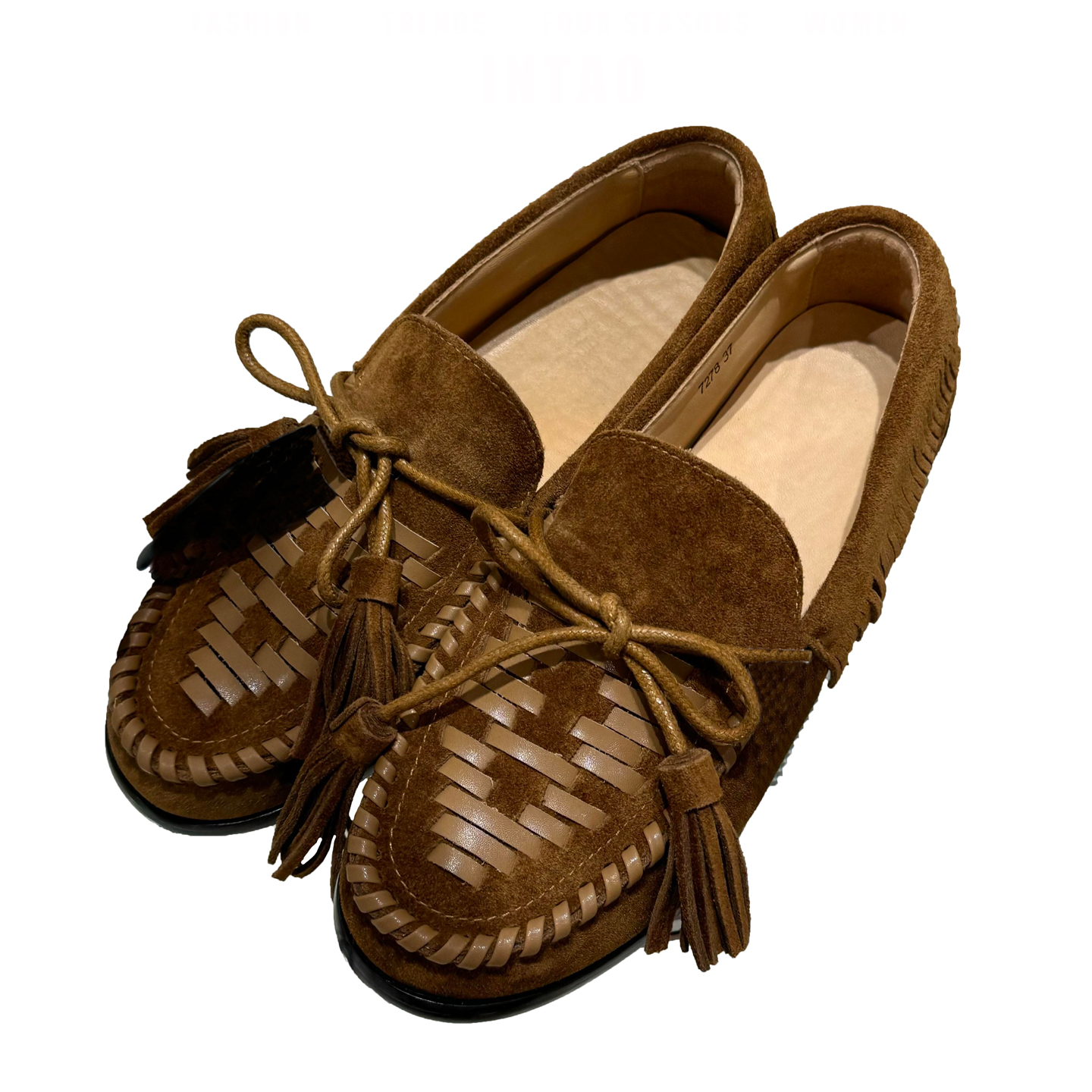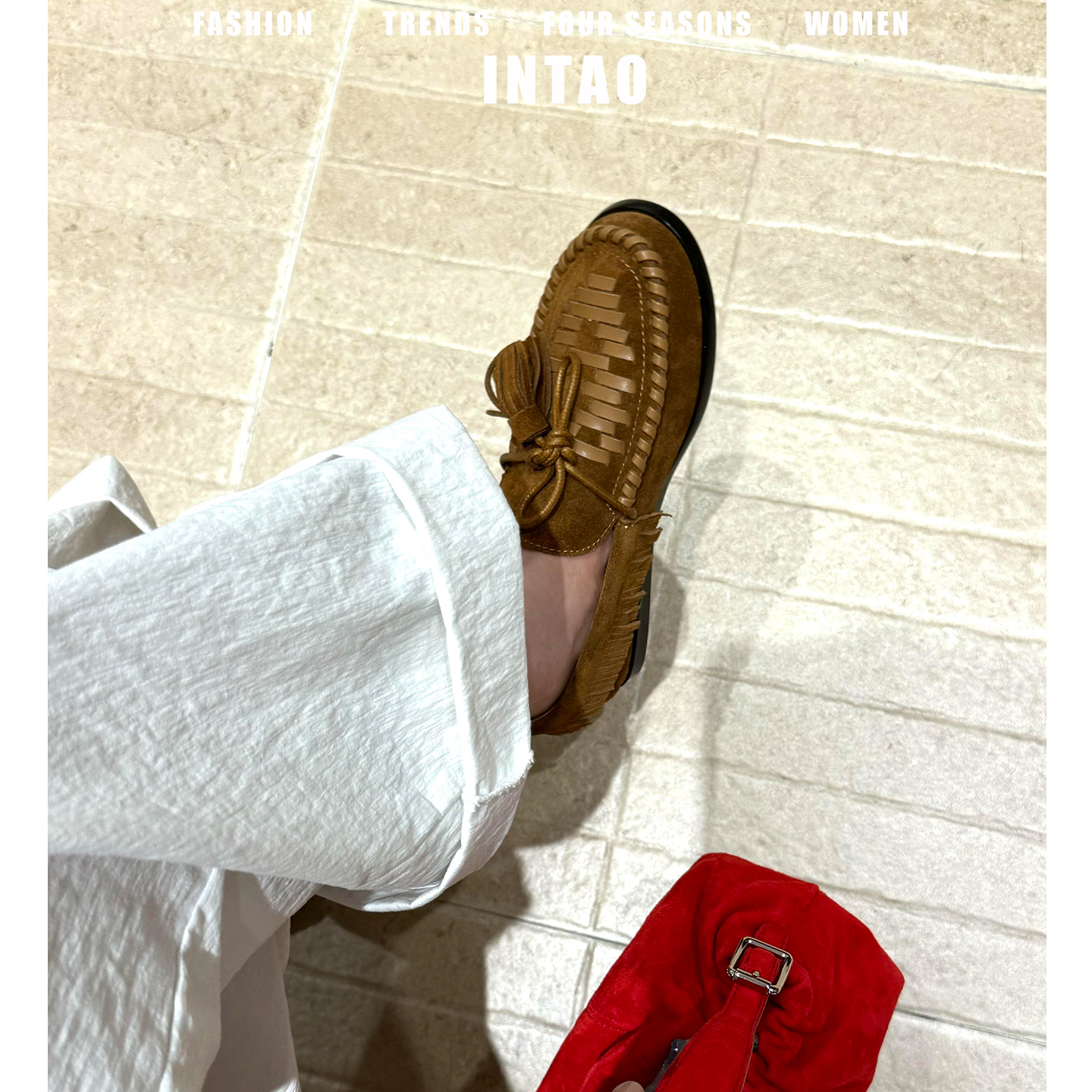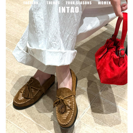 复古编织流苏深口单鞋女2025年秋季新款一脚蹬豆豆鞋老钱风乐福鞋
