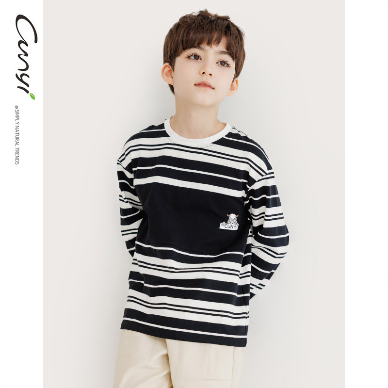 纯一良品童装男童长袖T恤春春秋新品中大童条纹上衣可飒可盐