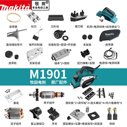 makita牧田电刨配件1901转子机壳碳刷82刨刀边盖底板皮带开关
