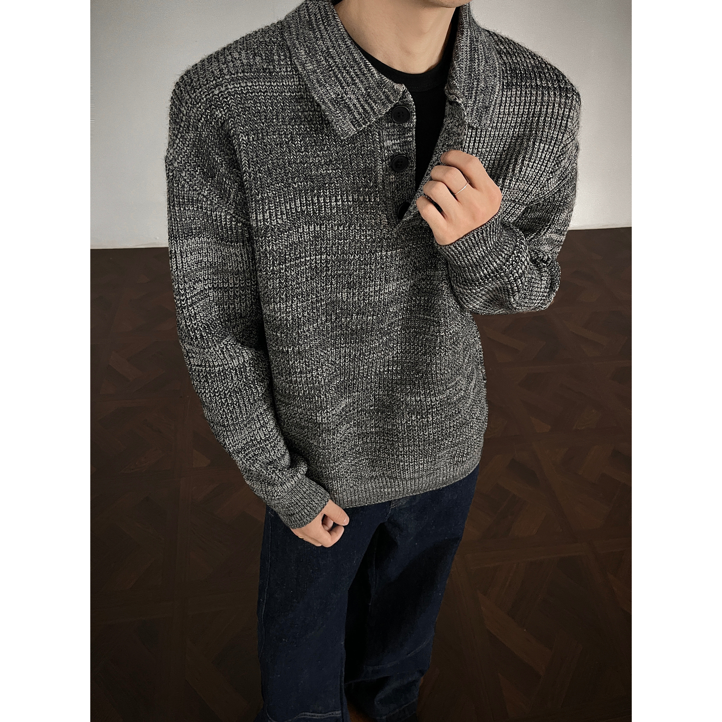 复古老钱风POLO领毛衣男潮牌