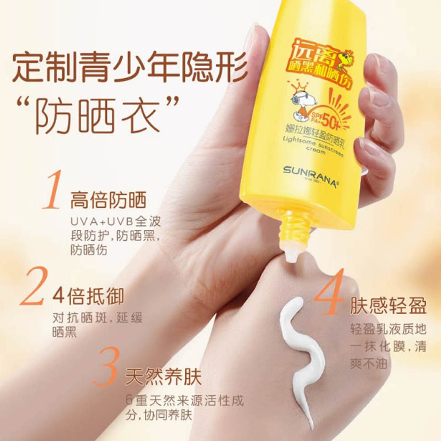 史努比防晒乳青少年防晒霜学生专用清爽男女高中生官方全身化妆品
