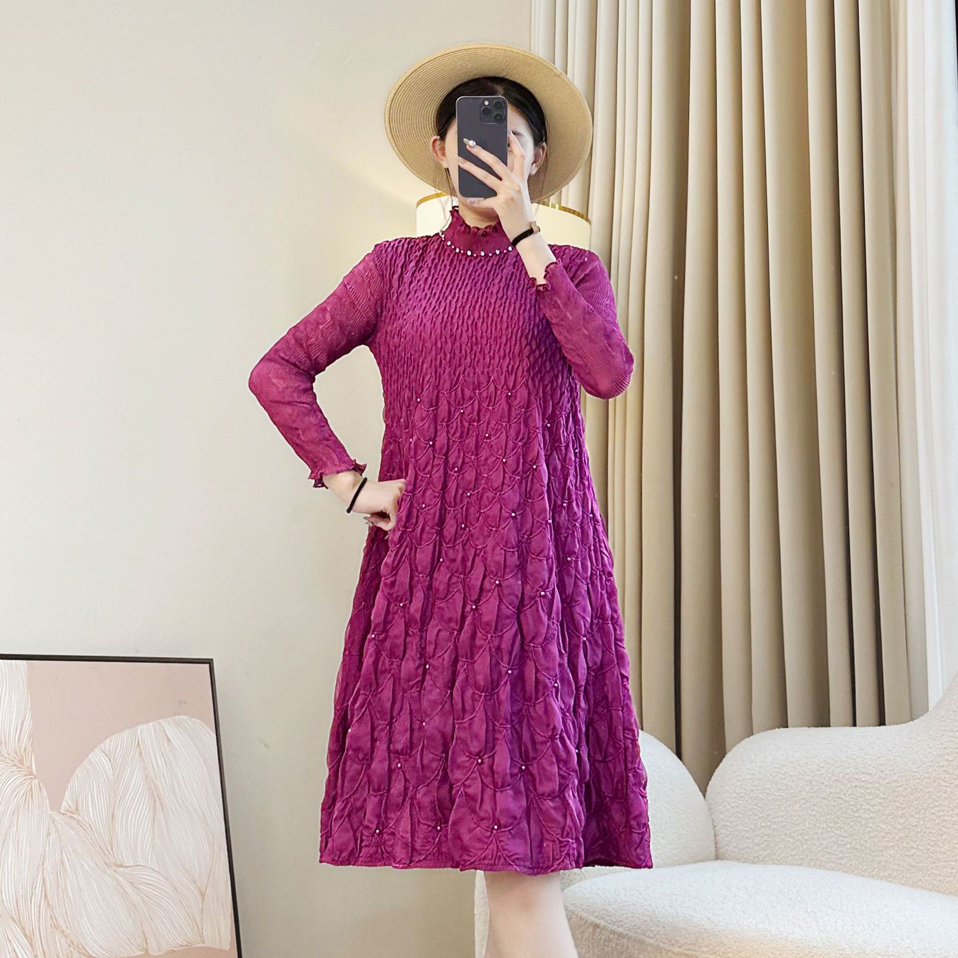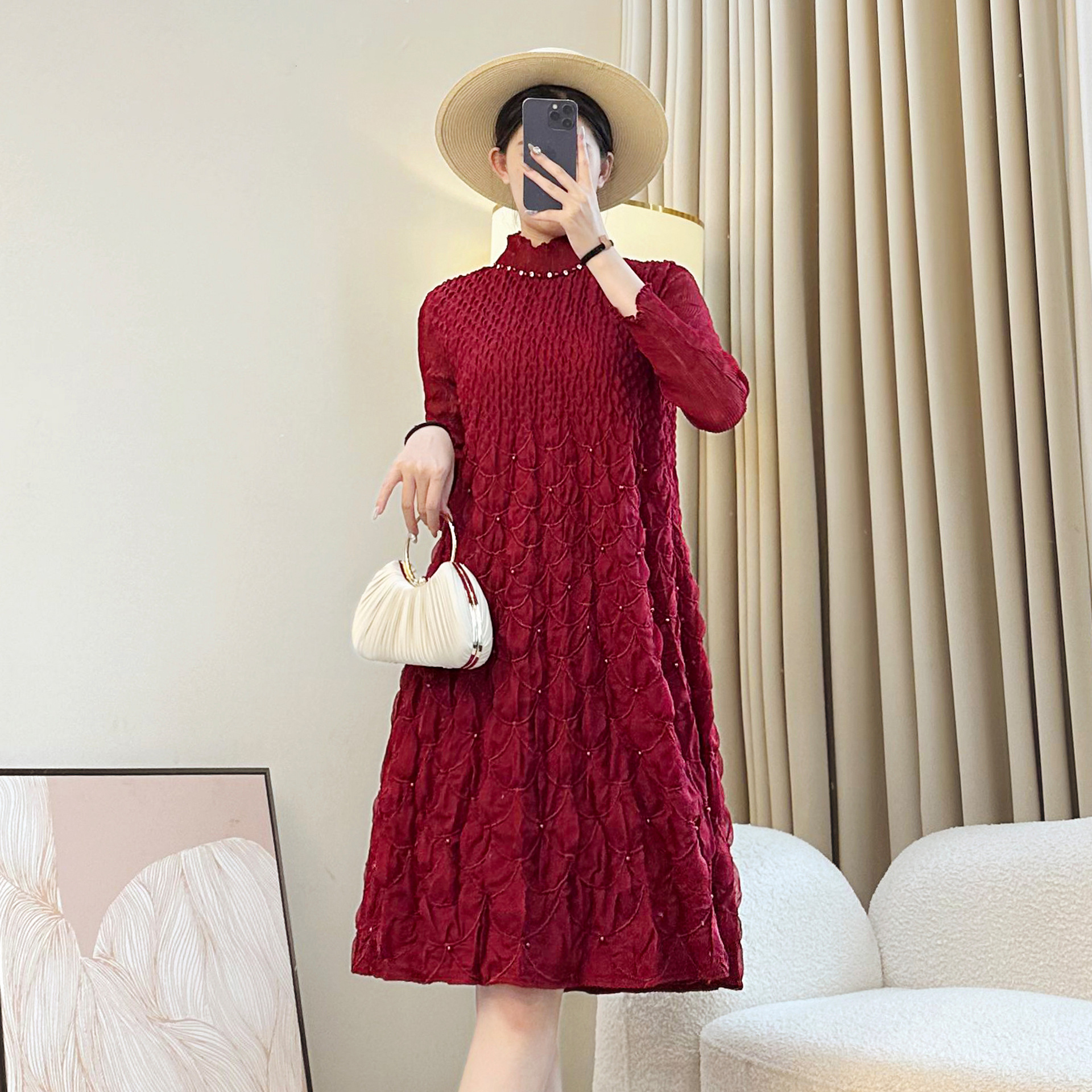 高级感秋装新款连衣裙女立领红色洋气妈妈大码优雅婚宴礼服裙
