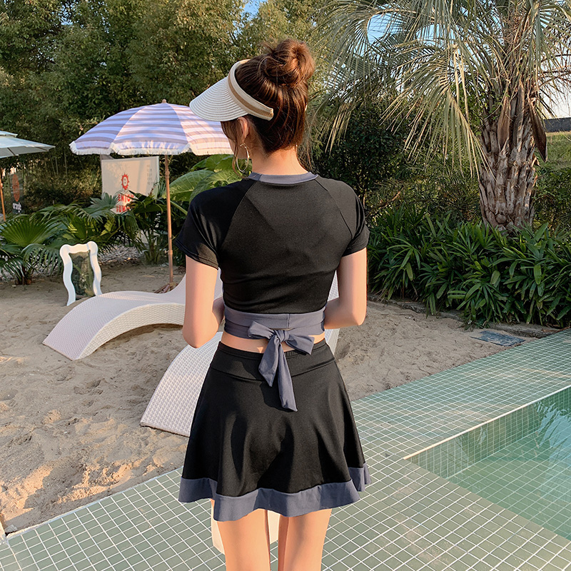 女士泳衣分体式夏季新款保守两件套显瘦学生运动裙式温泉度假泳装