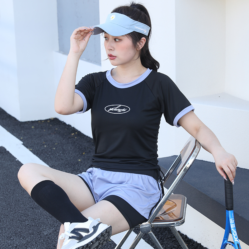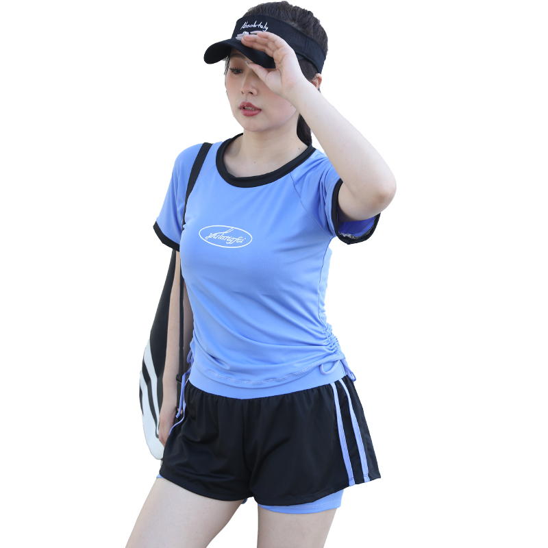 运动大码泳衣女游泳馆专用胖mm分体保守短袖短裤两件套200斤泳装
