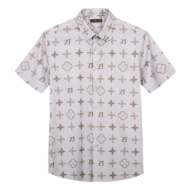 才子男装时尚满印短袖衬衫男士2025夏季新款薄款修身休闲中年衬衣