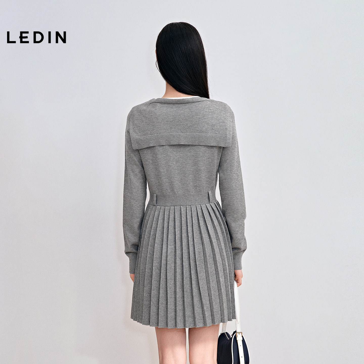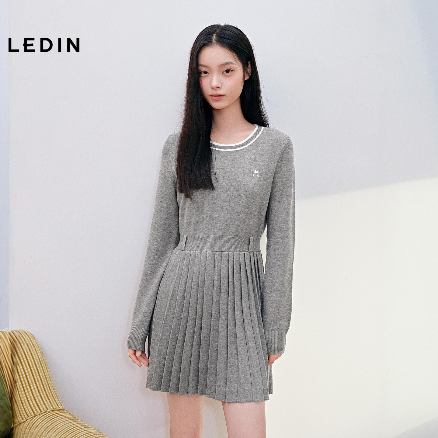 乐町真两件披肩X版型连衣裙女装2026年春季新款精致刺绣针织裙子