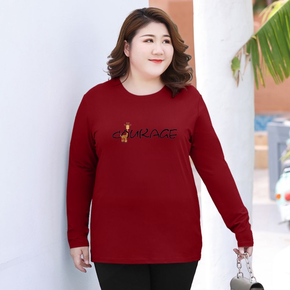 大肥t恤女200斤可穿女装长袖大码宽松显瘦秋衣妈妈打底衫秋冬新款
