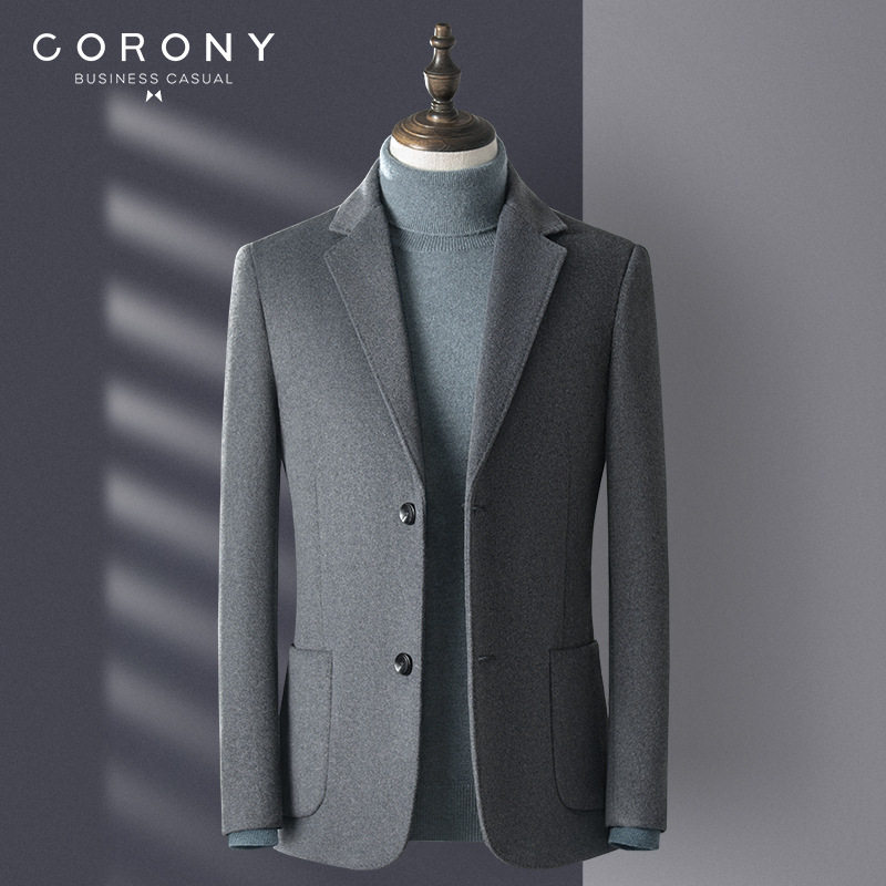 高端男装2023秋冬新款中年男本命年酒红色毛呢西装小西服羊毛外套