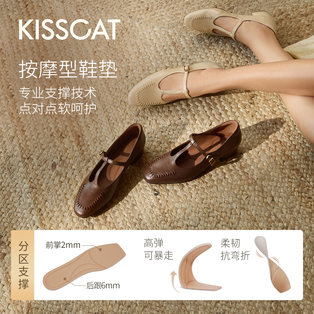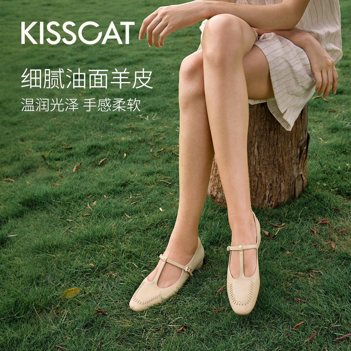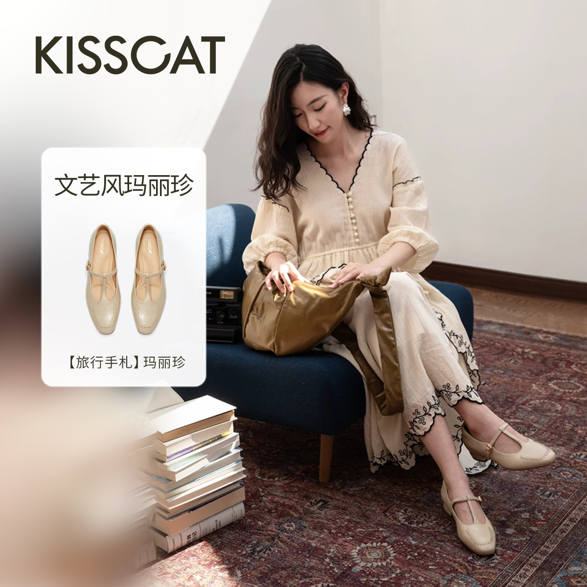 KISSCAT接吻猫[旅行手札]25秋新复古T字带玛丽珍平底单鞋不累脚