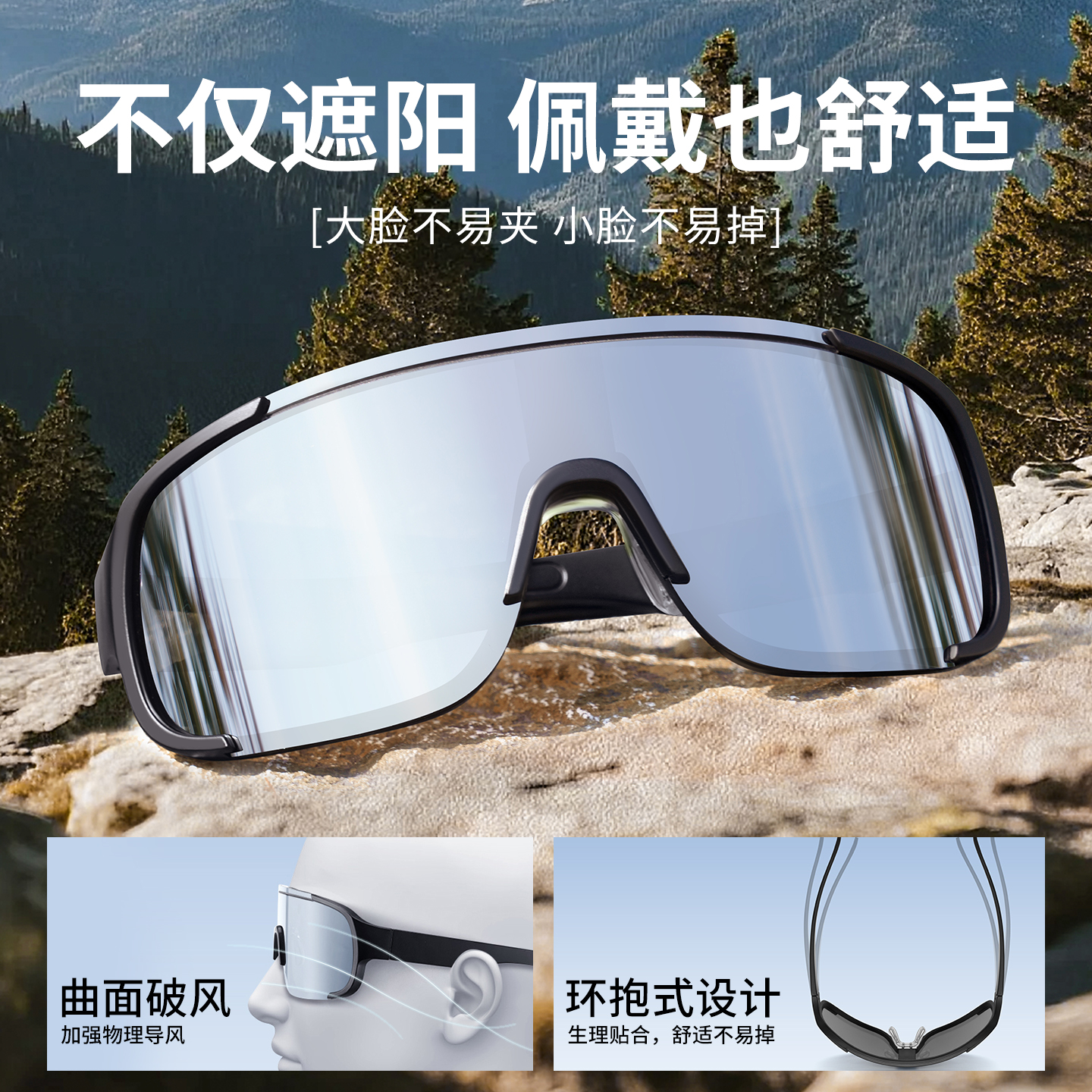 登山护目镜户外爬山防风沙墨镜男女骑行可戴眼镜跑步骑车近视套镜