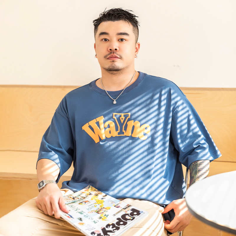 韦恩泽维尔潮牌大码日系短袖T恤男加肥加大宽松美式学院风t恤8248