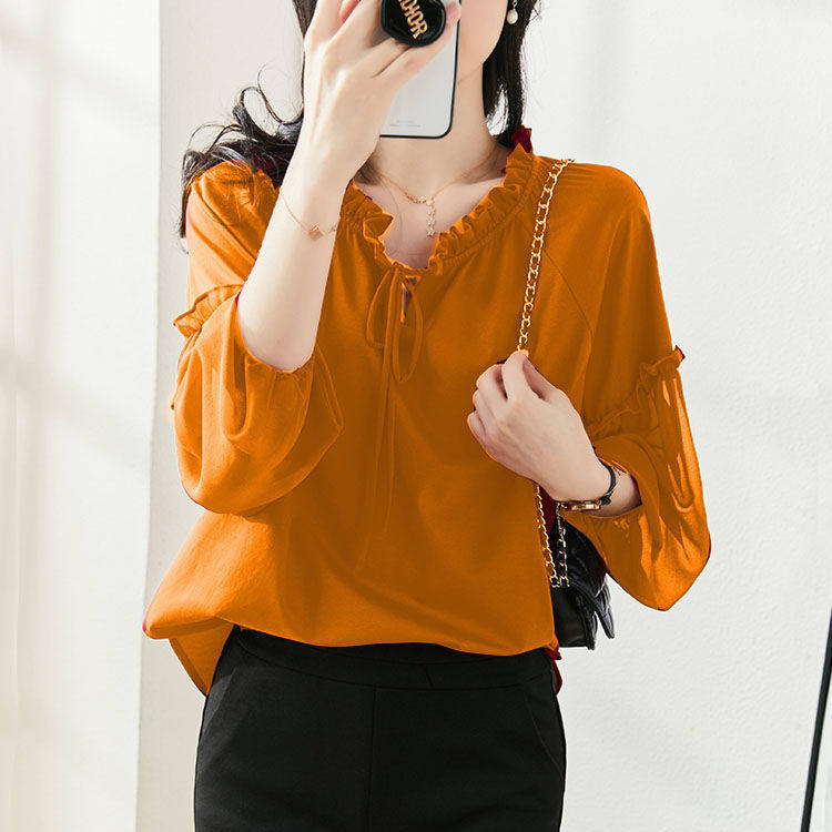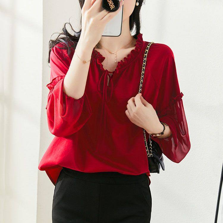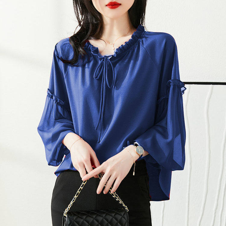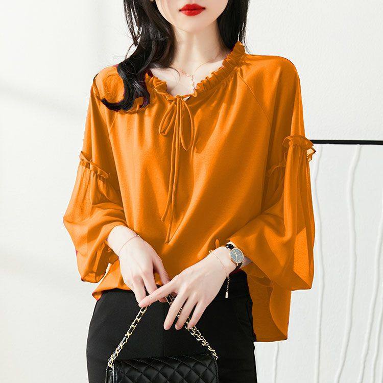 长袖雪纺衫灯笼袖大码女装2025春季新款宽松显瘦遮肚高档气质上衣