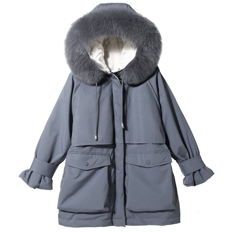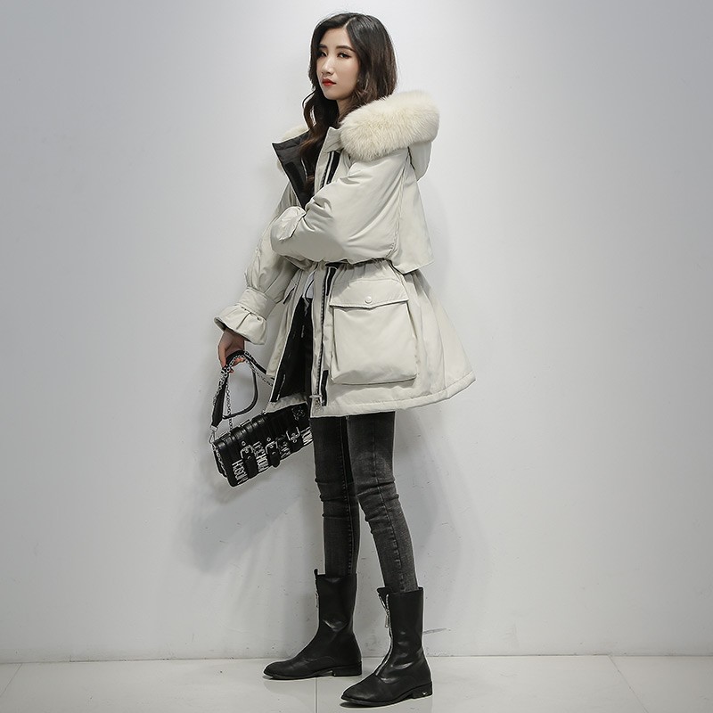 羽绒服女中长款2024冬季新款 派克宽松大毛领白鸭绒外套加厚韩版