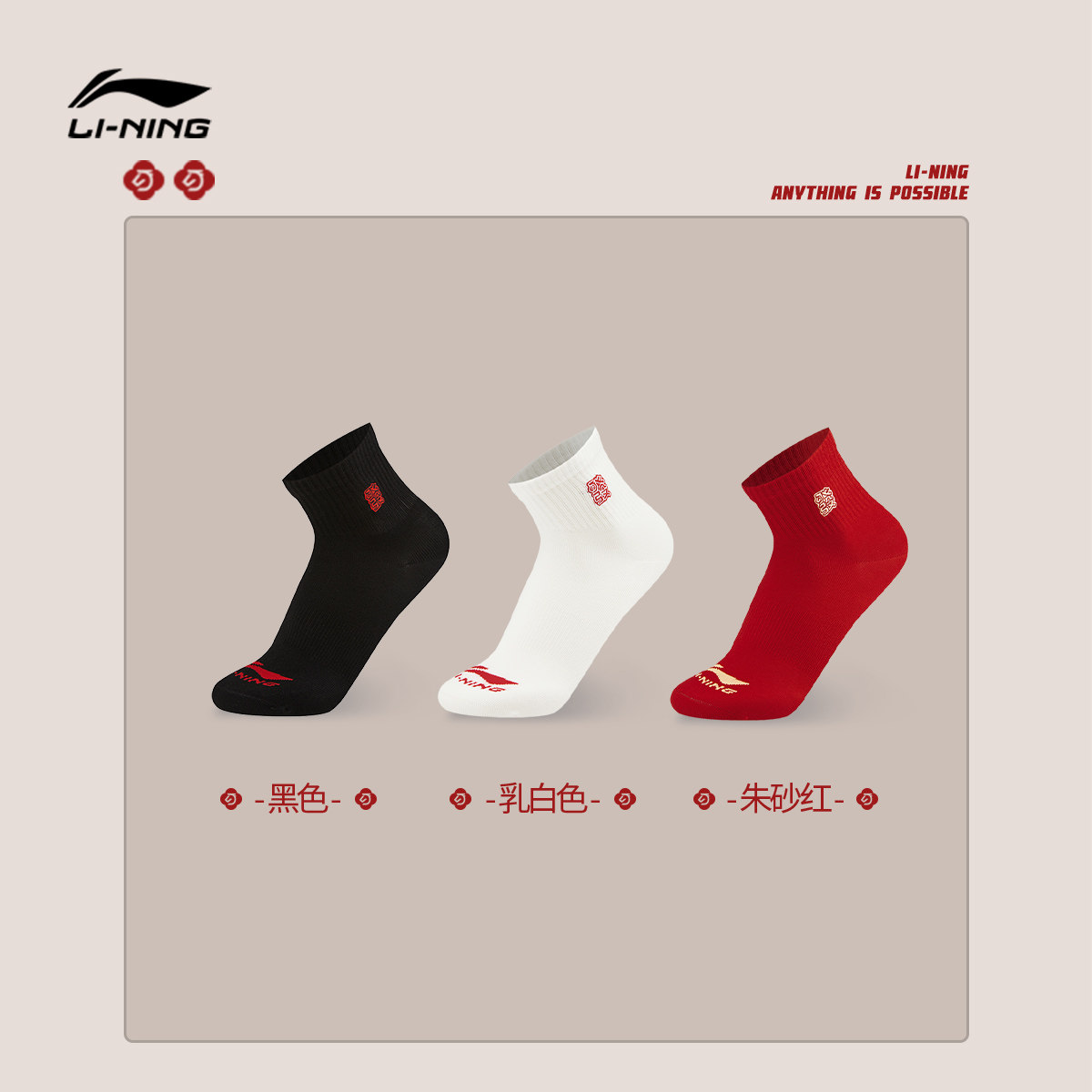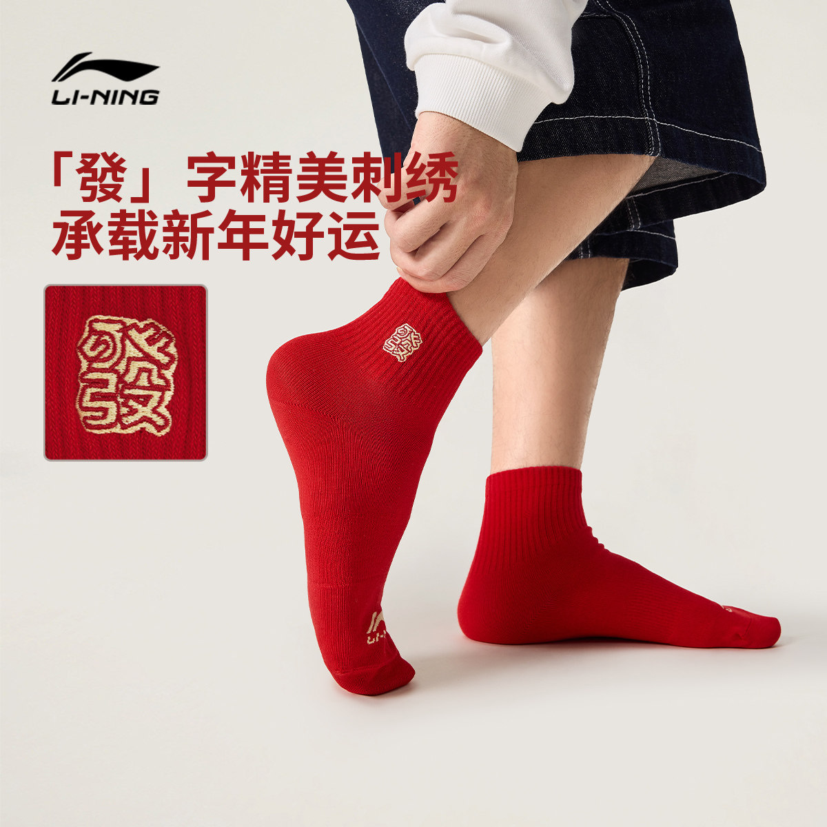 李宁日进斗金短袜男女款官方2026新年鸿运穿搭马年本命红色运动袜