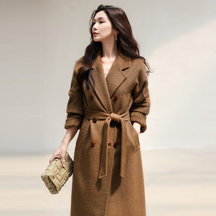 悦戎秘鲁进口苏力羊驼毛大衣女中长款2025秋冬皮草感羊毛呢外套