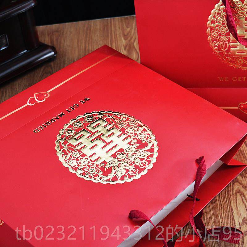 高档结婚手提袋大婚号中国风创意礼品袋婚庆用品色回礼袋礼喜糖袋