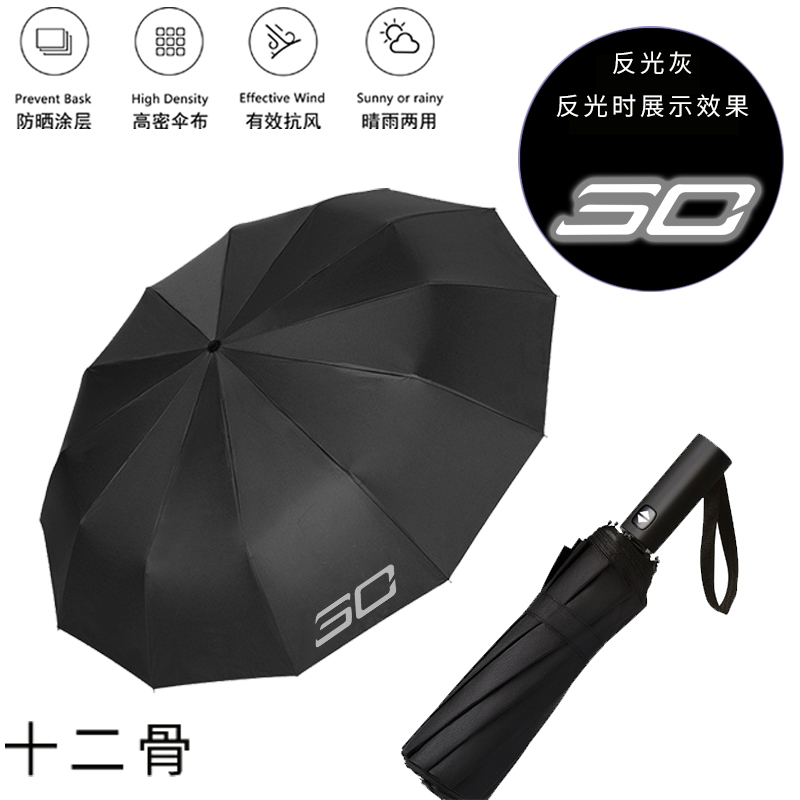 篮球球星库里周边两用黑胶自动折叠晴雨伞防晒12骨雨伞防晒太阳伞