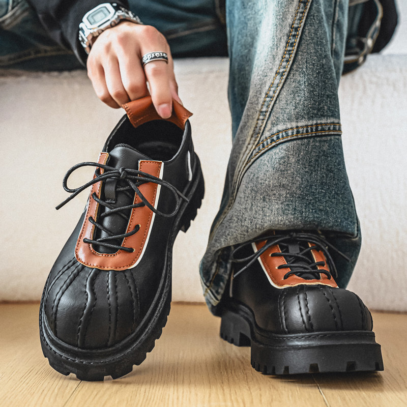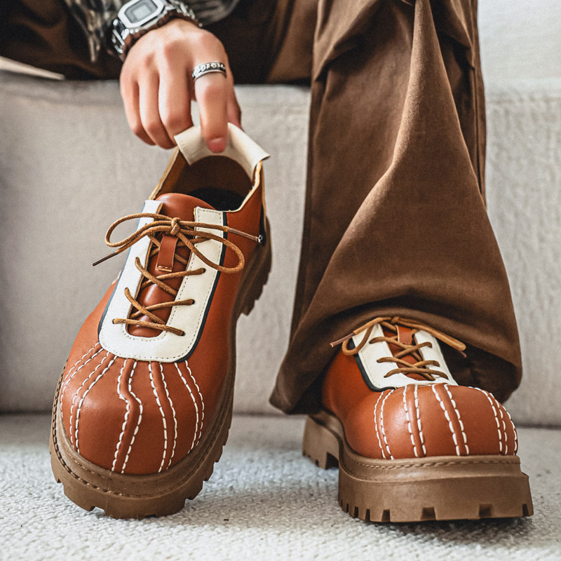 外贸男士小众复古小皮鞋男款秋冬季厚底系带厚底内增高大头德比鞋