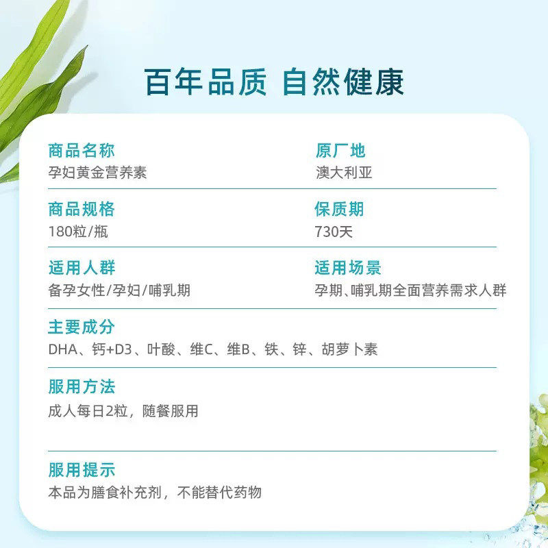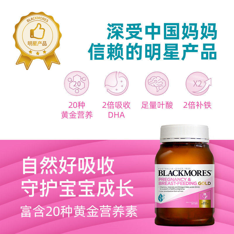 澳佳宝BLACKMORES孕黄金素叶酸dha复合维生素180粒澳洲官方正品