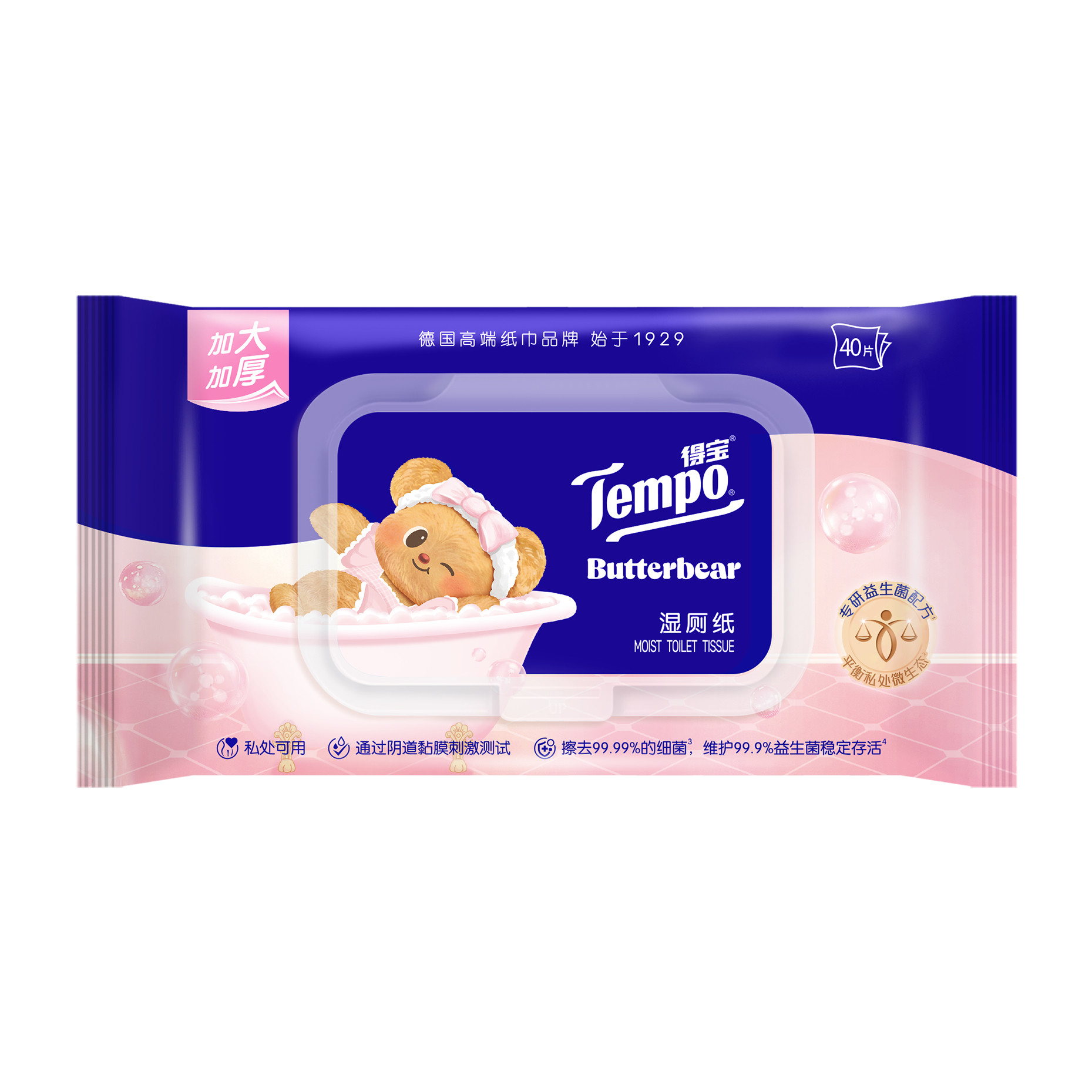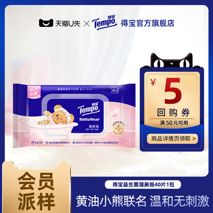 【会员派样】Tempo得宝益生菌系列湿厕纸x黄油小熊联名40片1包