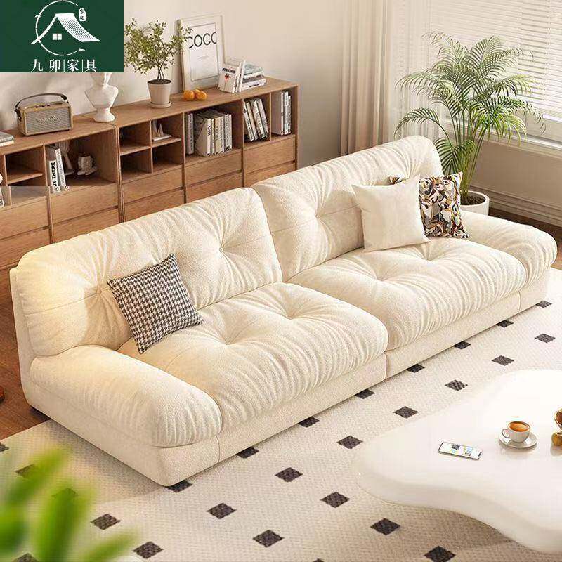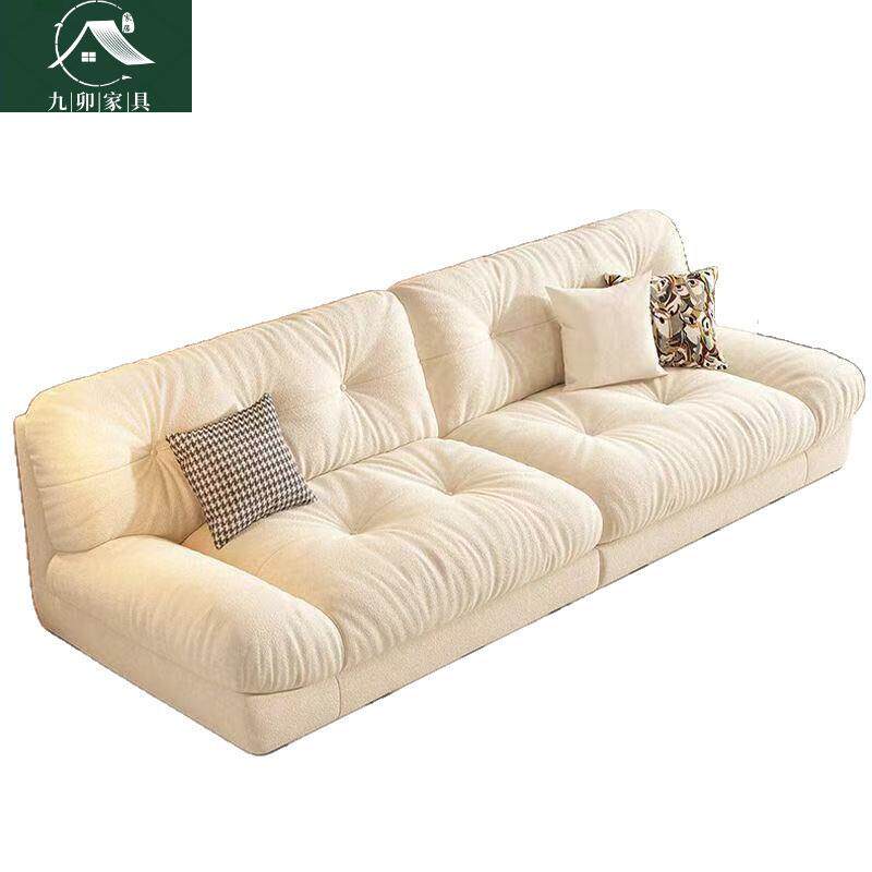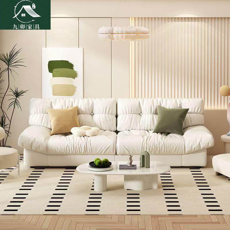 油风云朵沙发小户出型客厅意式代简现奶ABH约租房三人位直排皮艺