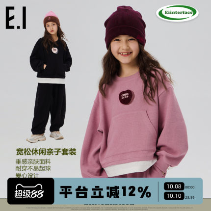 ei童装女童假两件套头卫衣春秋装新款中大童学院风宽松亲子装