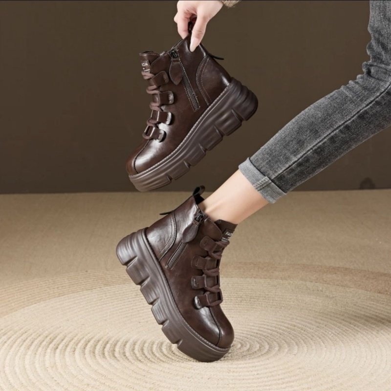 真皮厚底马丁靴女加绒大棉短靴