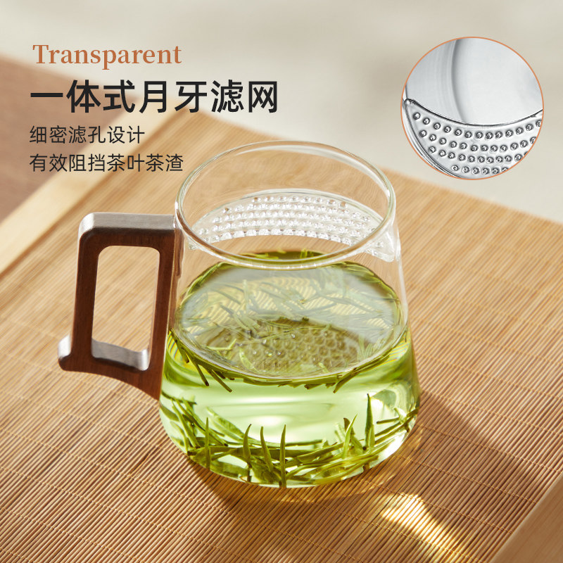 忆壶茶玻璃茶杯茶水分离月牙杯过滤办公室水杯泡茶专用喝绿茶杯子