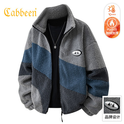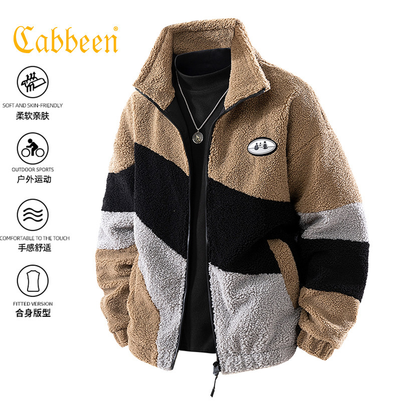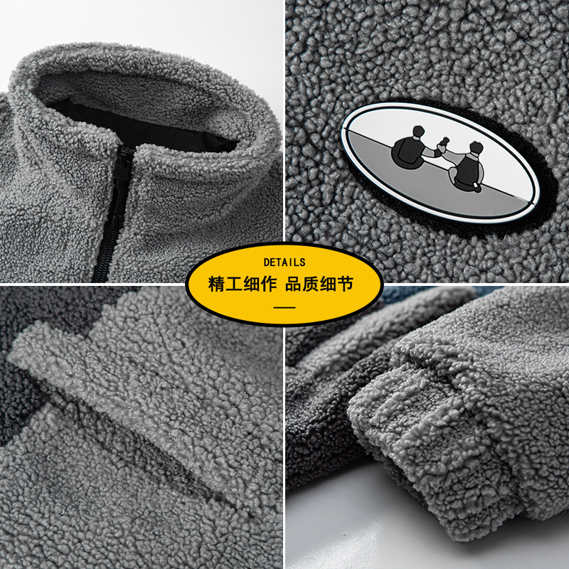 卡宾摇粒绒外套男冬季加厚2025新款美式潮牌秋冬加绒保暖立领夹克