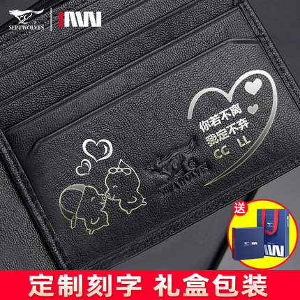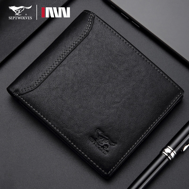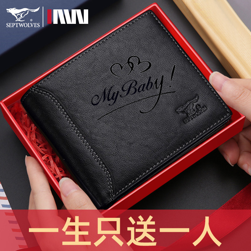 七匹狼男士真皮钱包2026新款短款牛皮皮夹时尚轻奢高档男孩钱夹正