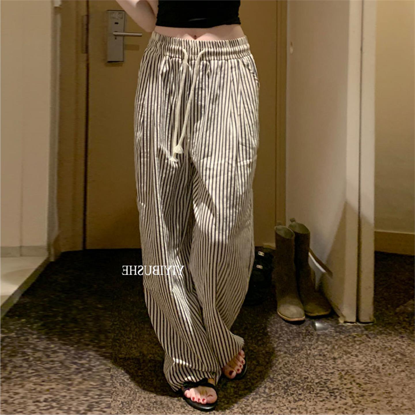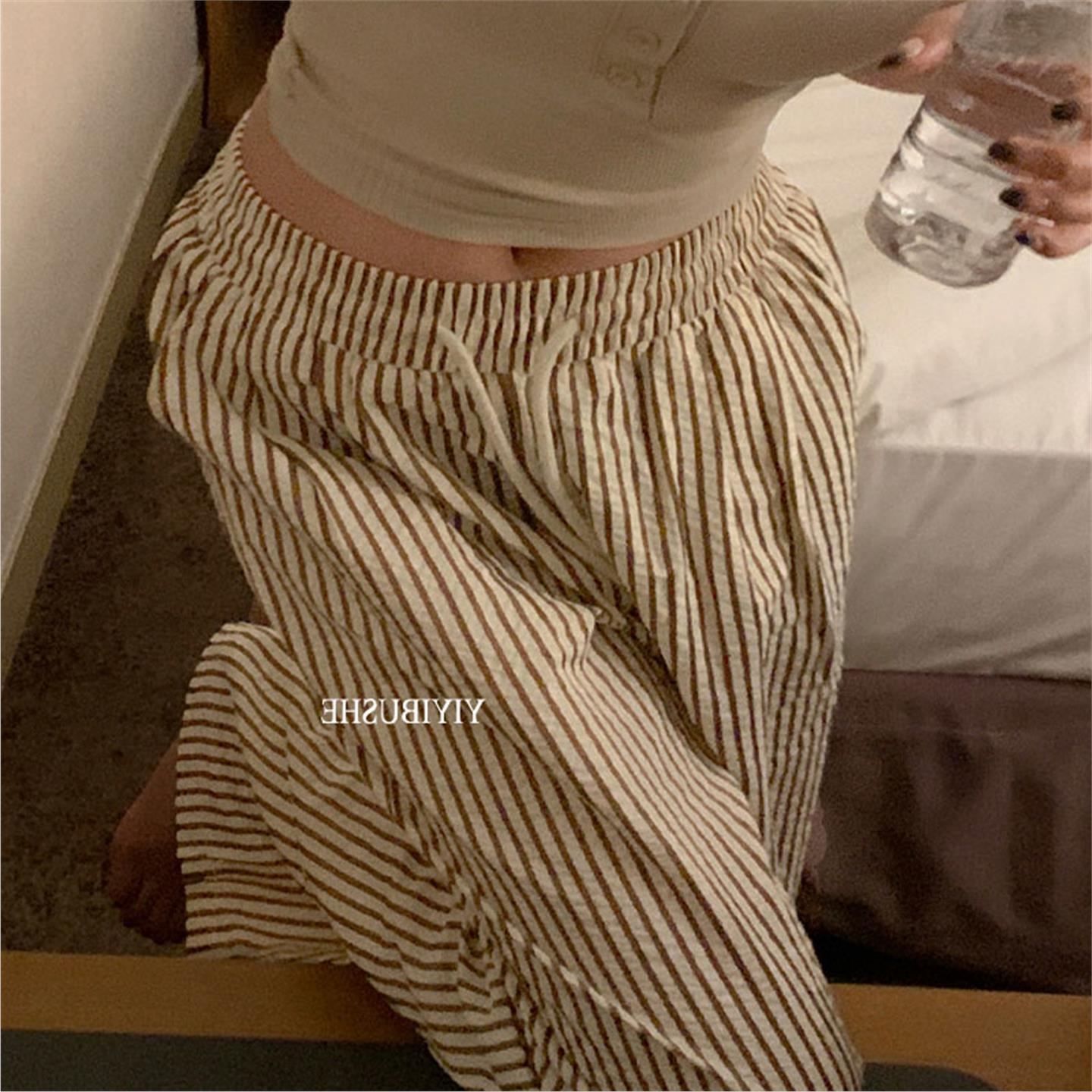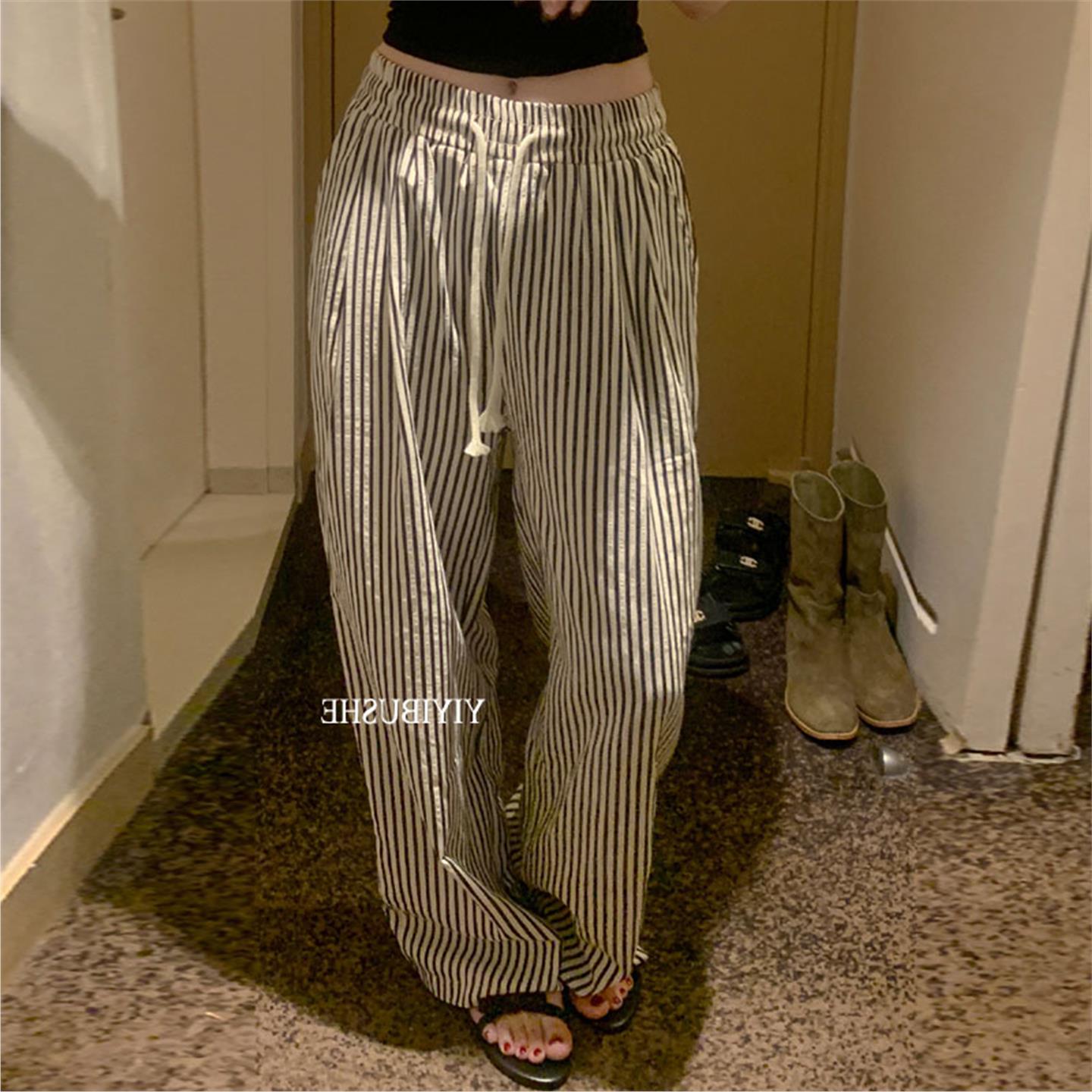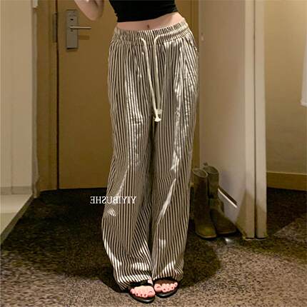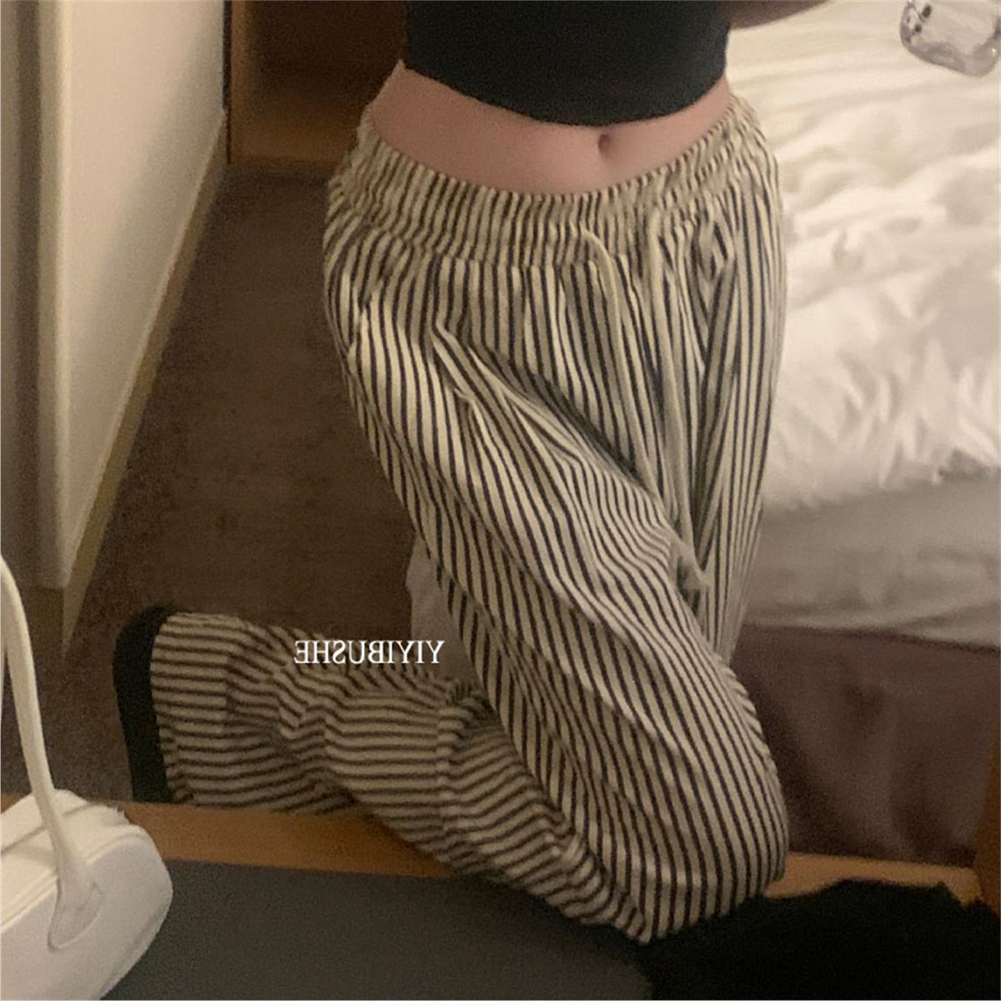 热销 51STUDIO自制ZK208 欧尼BI备~性感低腰拼色条纹阔腿休闲裤