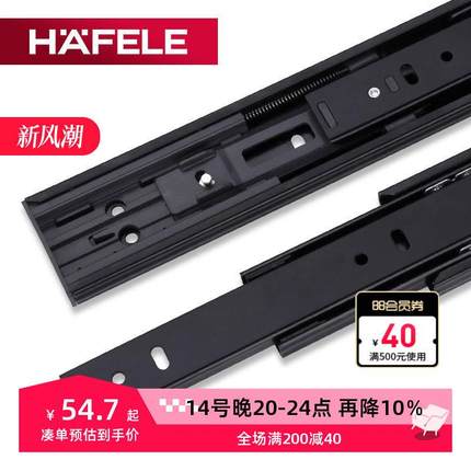 德国海福乐抽屉滑道轨道三节轨加厚缓冲阻尼静音导轨橱柜键盘托架