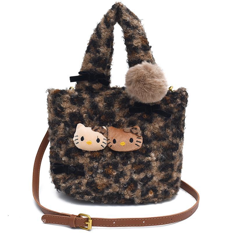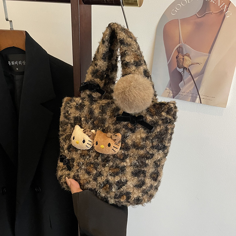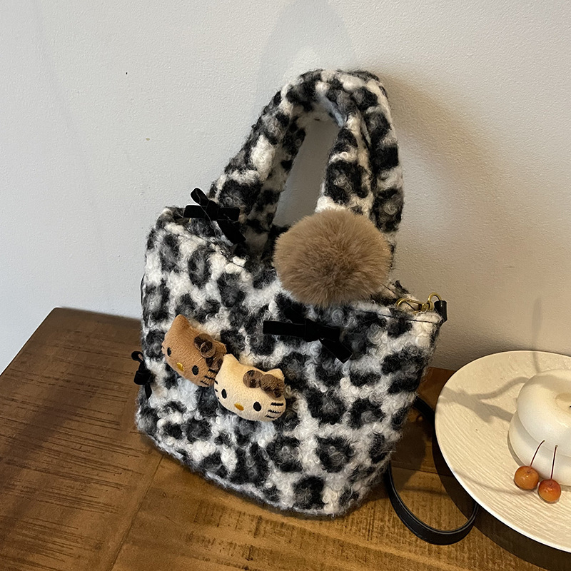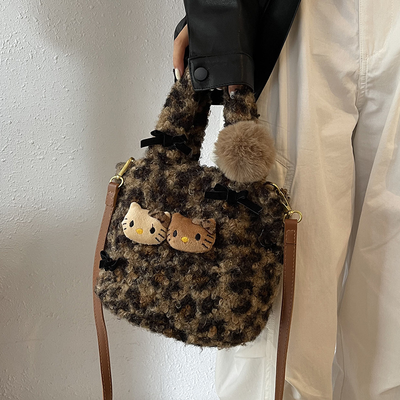 超火豹纹毛茸茸小包包女2024新款秋冬季百搭斜挎包手提毛毛水桶包