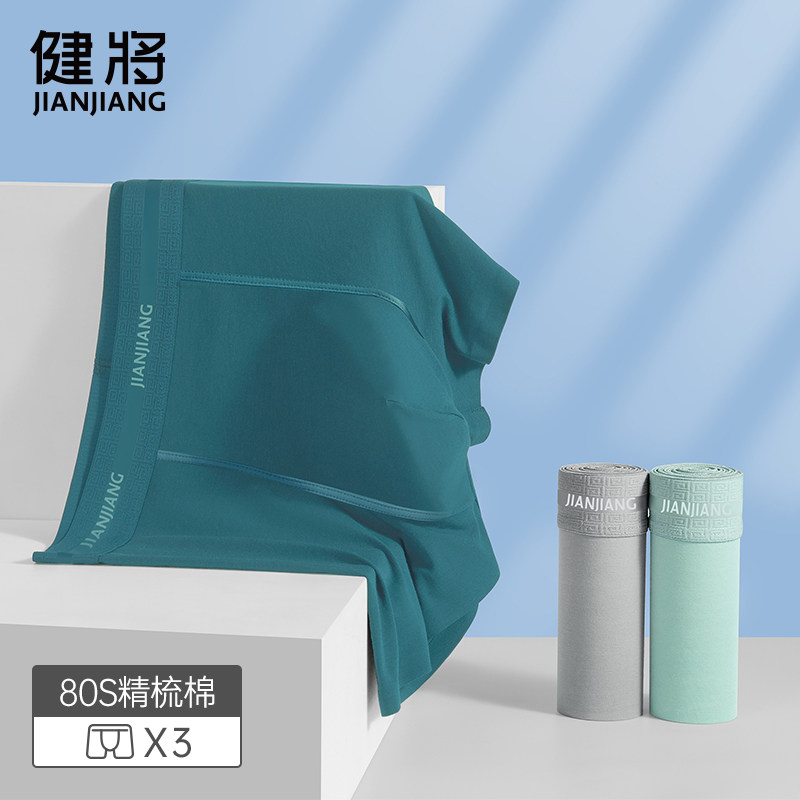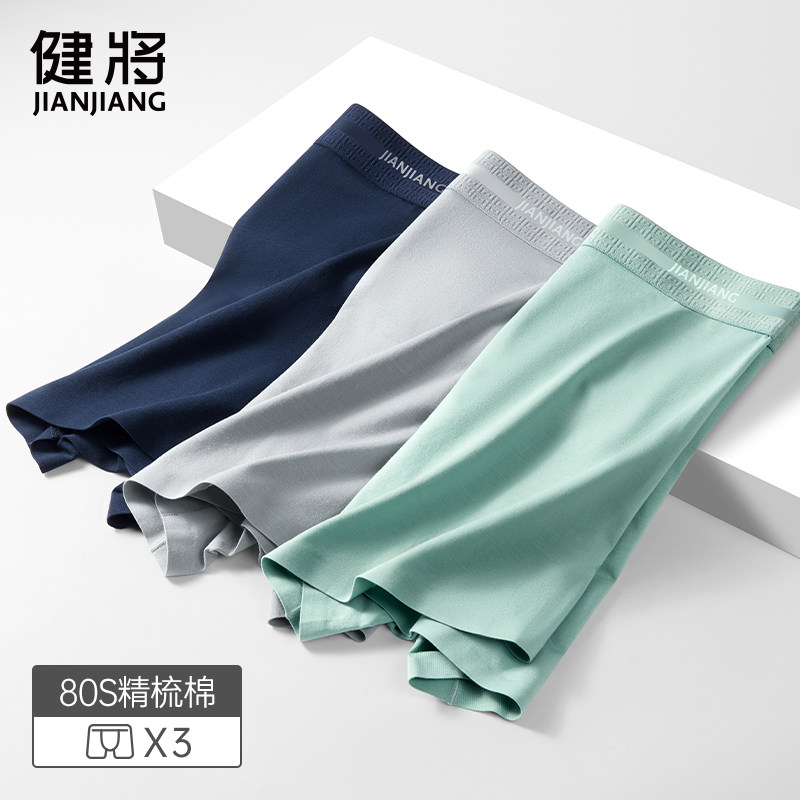 健将80S精梳棉男士内裤纯棉裆平角裤男生抗菌透气无痕四角短裤头