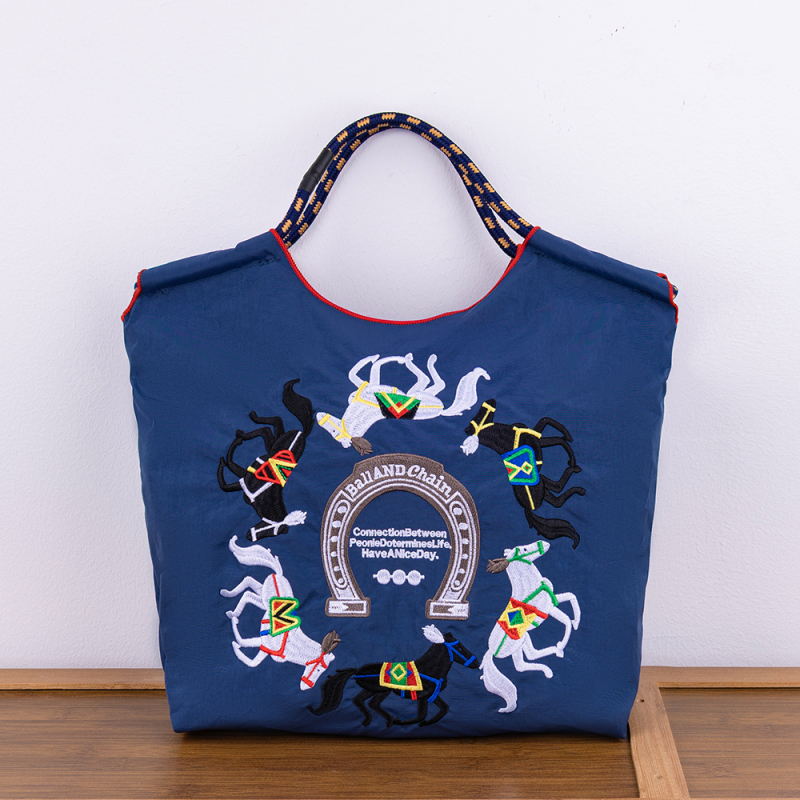 升级拉链款日韩环保购物袋高圆圆同款旅行袋刺绣包尼龙帆布斜挎女