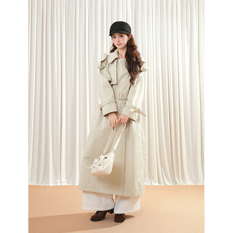 财阀女主 气质双排扣风衣外套女秋季新款英伦风高级感中长款大衣