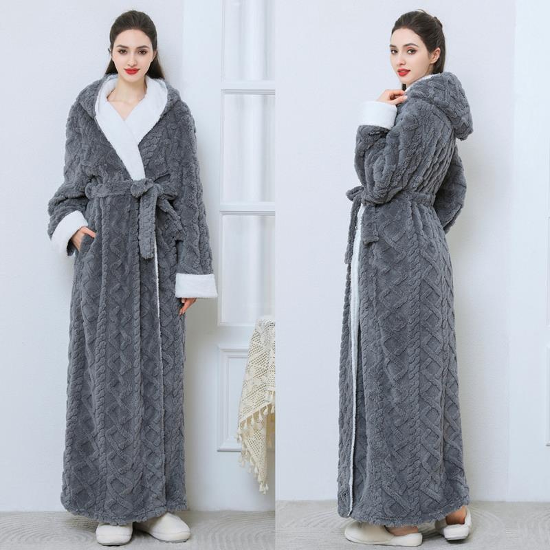 秋冬睡袍女秋冬季加长款2025新款紫色法兰绒加厚珊瑚绒睡衣1009c