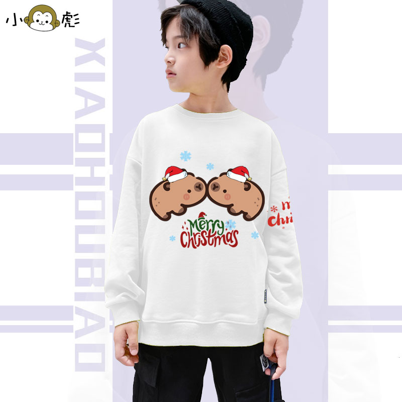 卡皮巴拉水豚君可爱萌系联名圣诞节圆领卫衣男女儿童装学生款长袖