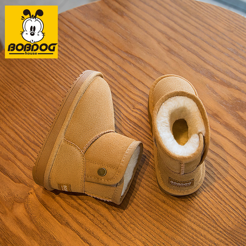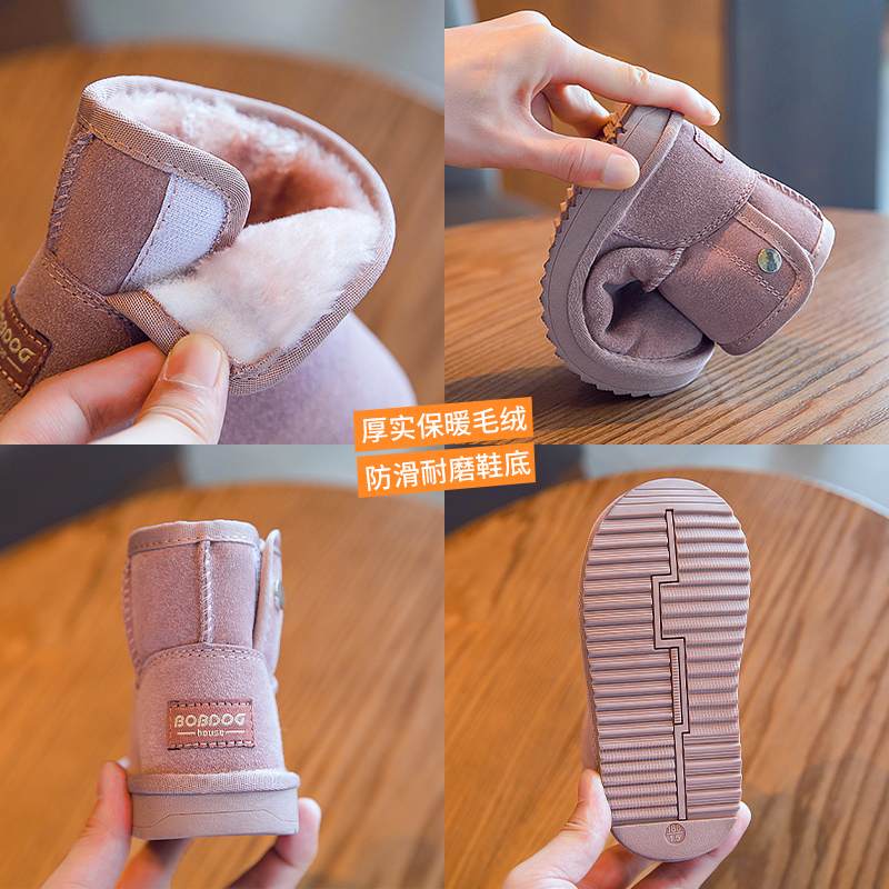 巴布豆儿童雪地靴真皮冬季2025新款保暖加绒加厚男童靴子女童棉鞋