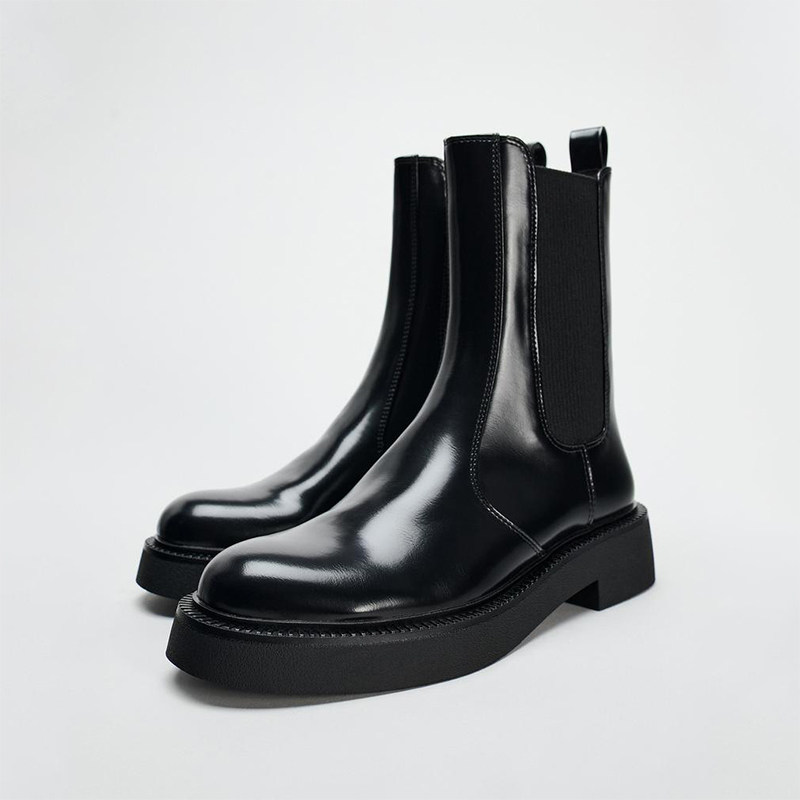 【断码清仓】ZA松糕厚底切尔西短靴英伦风圆头马丁靴粗跟烟筒靴女