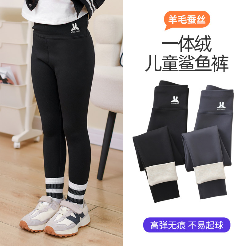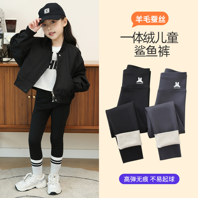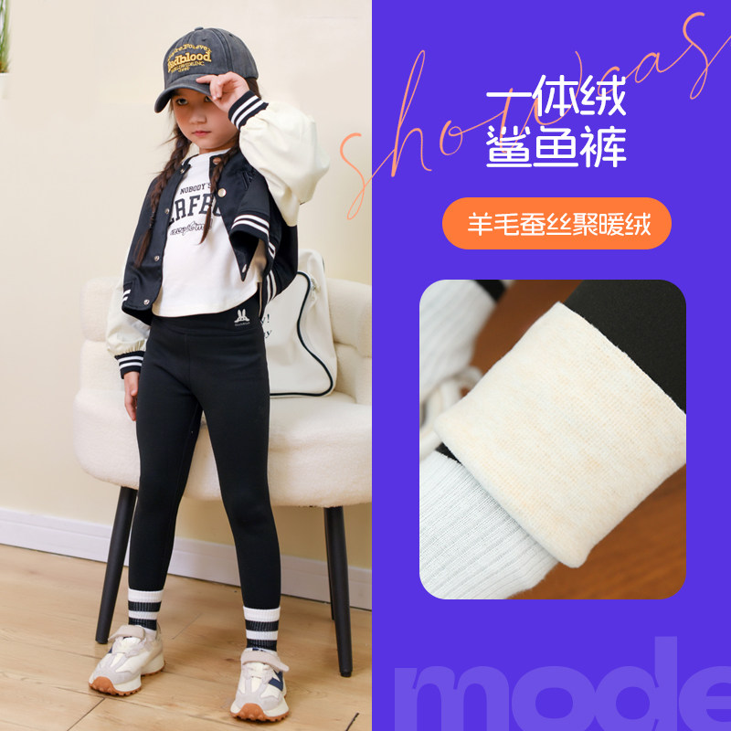 女童加绒鲨鱼裤2025新款薄绒秋冬季大童裤子冬款加厚儿童装打底裤